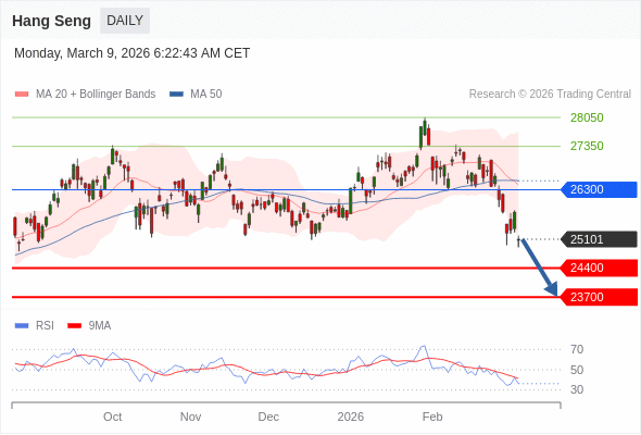 恒生指数 短线: 存在压力。
