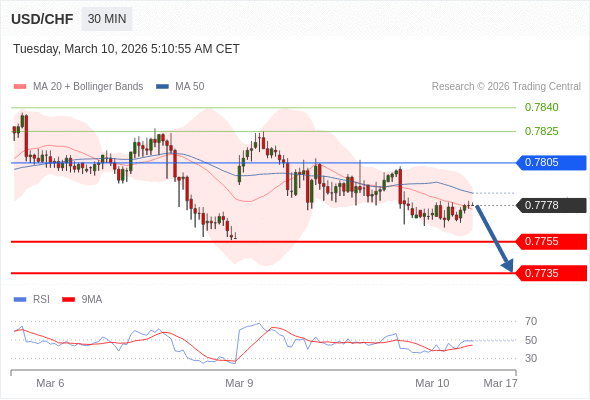 在 0.7805 之下,看跌,目标价位为 0.7755 ,然后为 0.7735 。