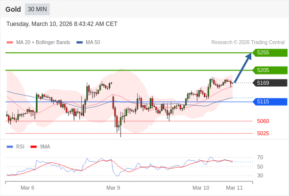在 5115 之上,看涨,目标价位为 5205 ,然后为 5255 。