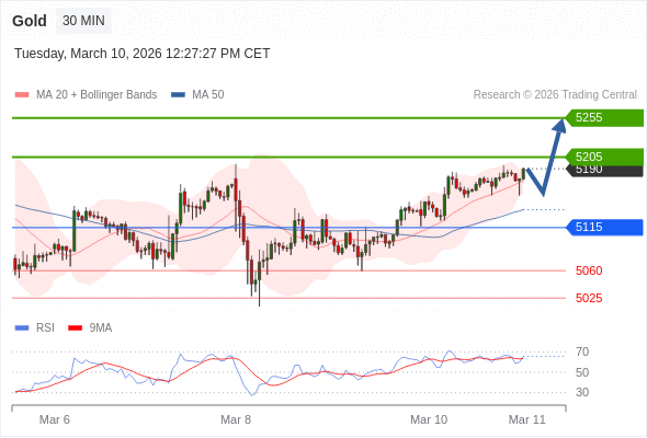 在 5115 之上,看涨,目标价位为 5205 ,然后为 5255 。