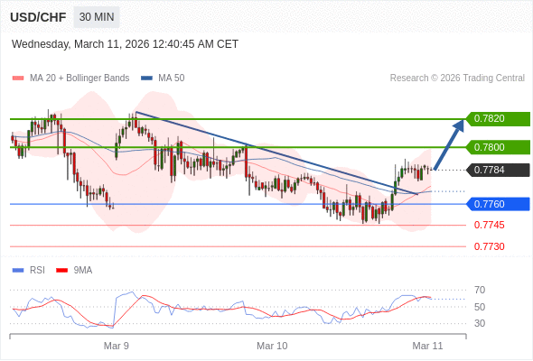 在 0.7760 之上,看涨,目标价位为 0.7800 ,然后为 0.7820 。