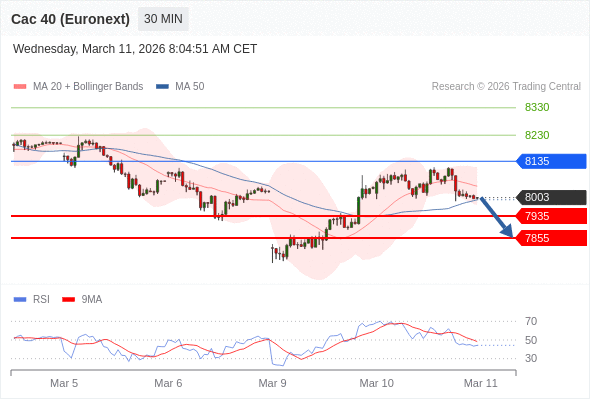 法国CAC指数期货 (Euronext) (H6) 当日内: 谨慎操作。