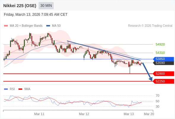 在 53850 之下,看跌,目标价位为 52800 ,然后为 52250 。