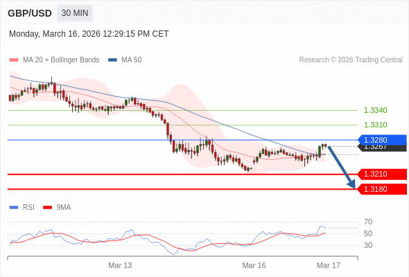 交易策略: 在 1.3280 之下,看跌,目标价位为 1.3210 ,然后为 1.3180 。