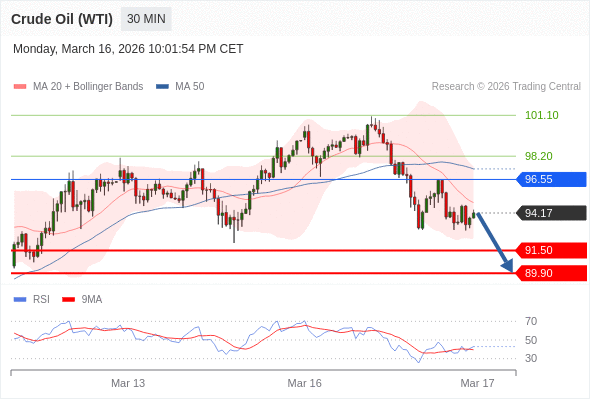 交易策略: 在 96.55 之下,看跌,目标价位为 91.50 ,然后为 89.90 。