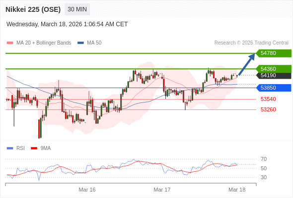 在 53850 之上,看涨,目标价位为 54360 ,然后为 54780 。