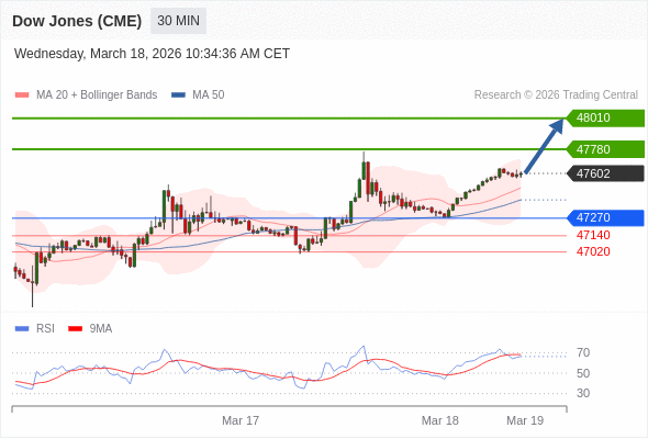 在 47270 之上,看涨,目标价位为 47780 ,然后为 48010 。