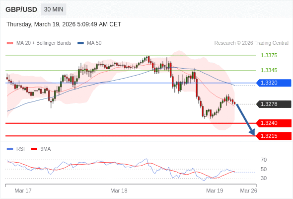 交易策略: 在 1.3320 之下,看跌,目标价位为 1.3240 ,然后为 1.3215 。