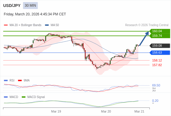 美元/日元 当日内 : 看涨,当 158.63 为支撑位。