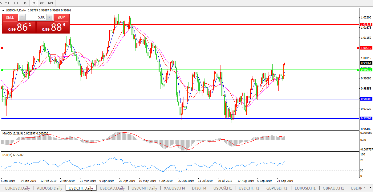 美元兑瑞郎USDCHF 日线图: