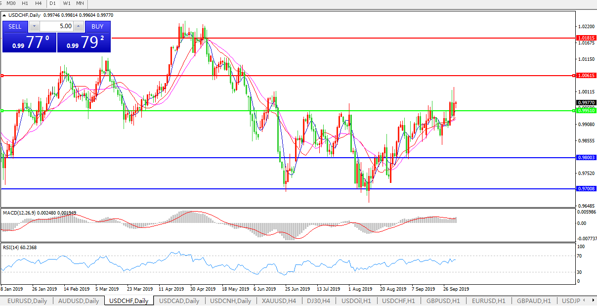 美元兑瑞郎USDCHF 日线图: