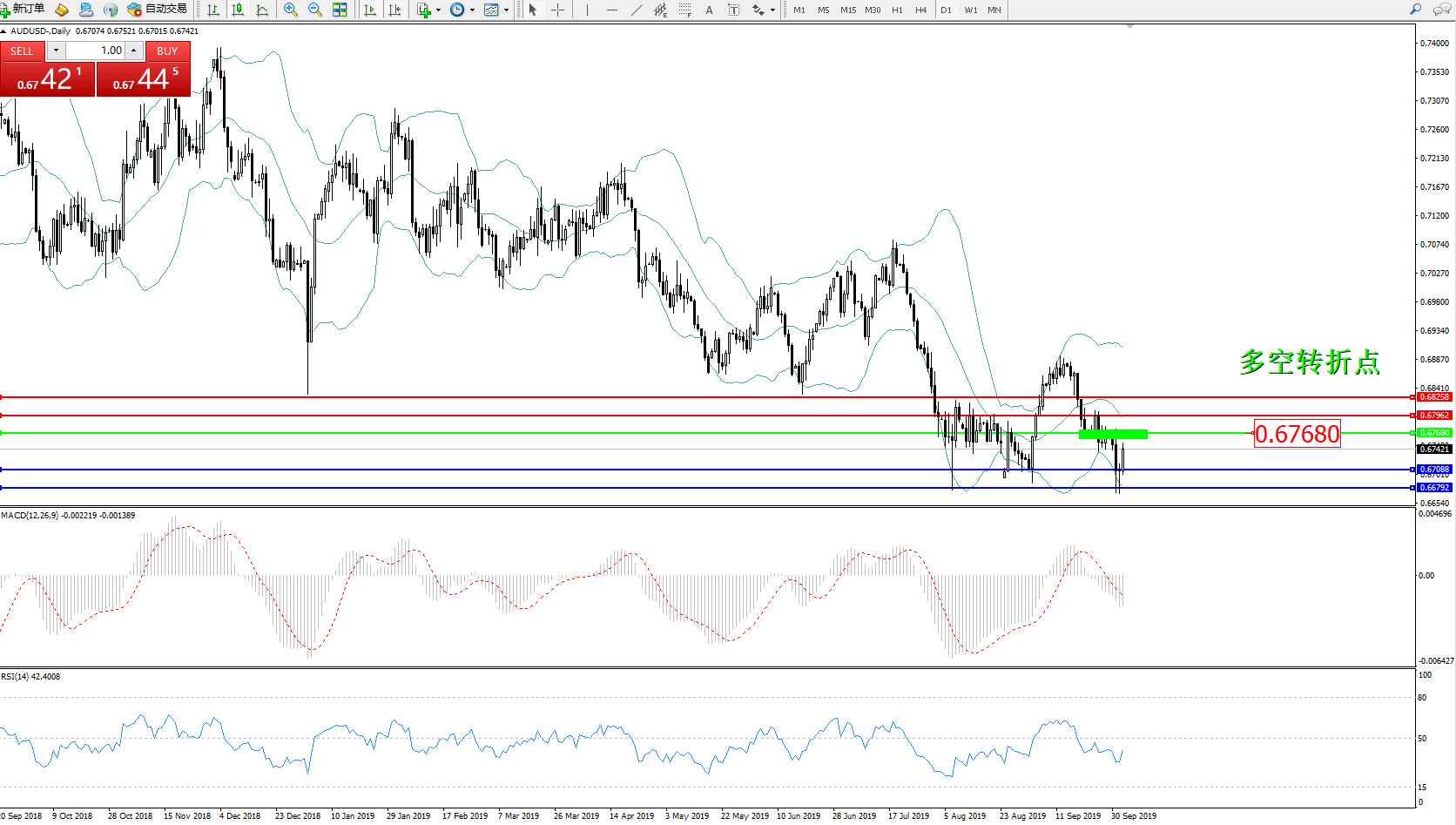 交易策略:0.67680下方看跌,目标0.67088、0.66792