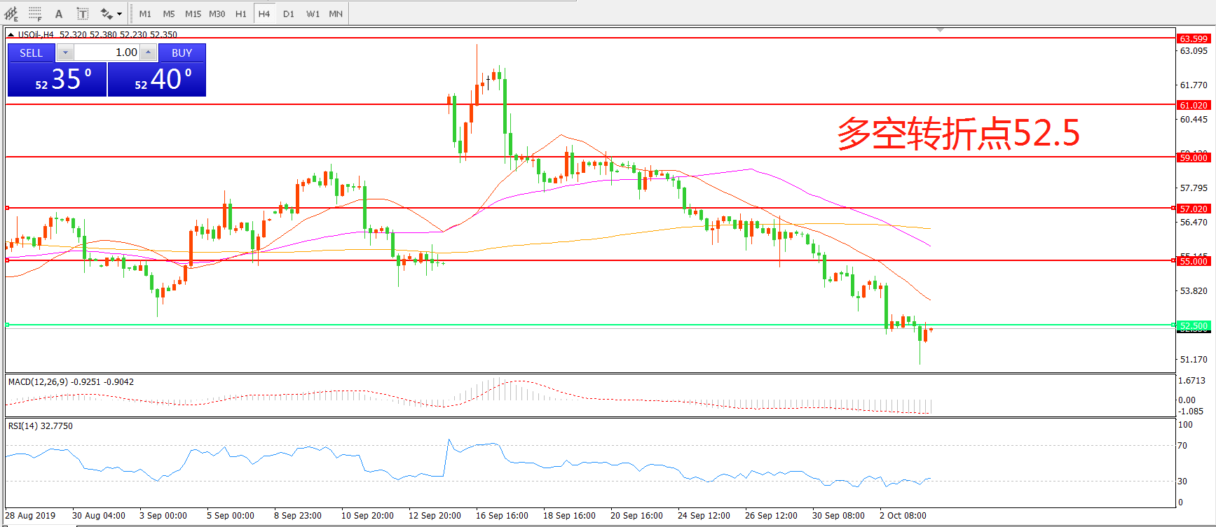 多空转折点:52.50