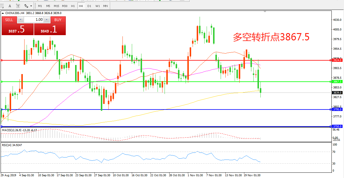 交易策略:在3867.50之下看跌,目标3795.00     3750.00