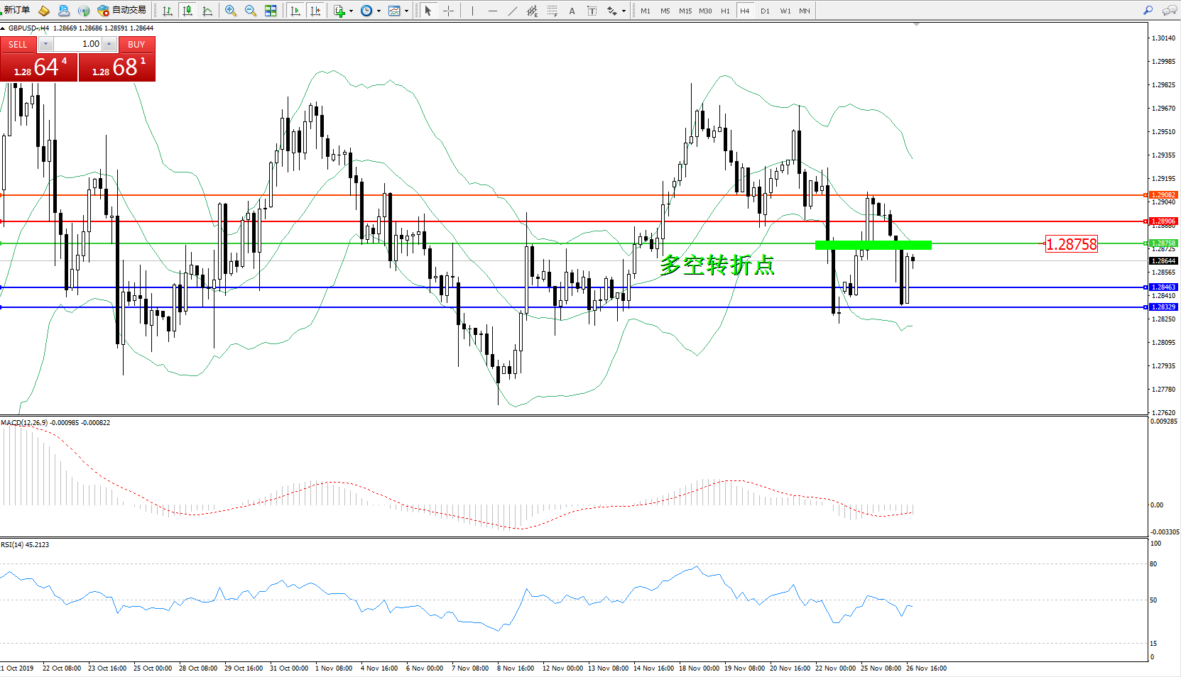 交易策略:1.28758下方看跌,目标1.284631.28329