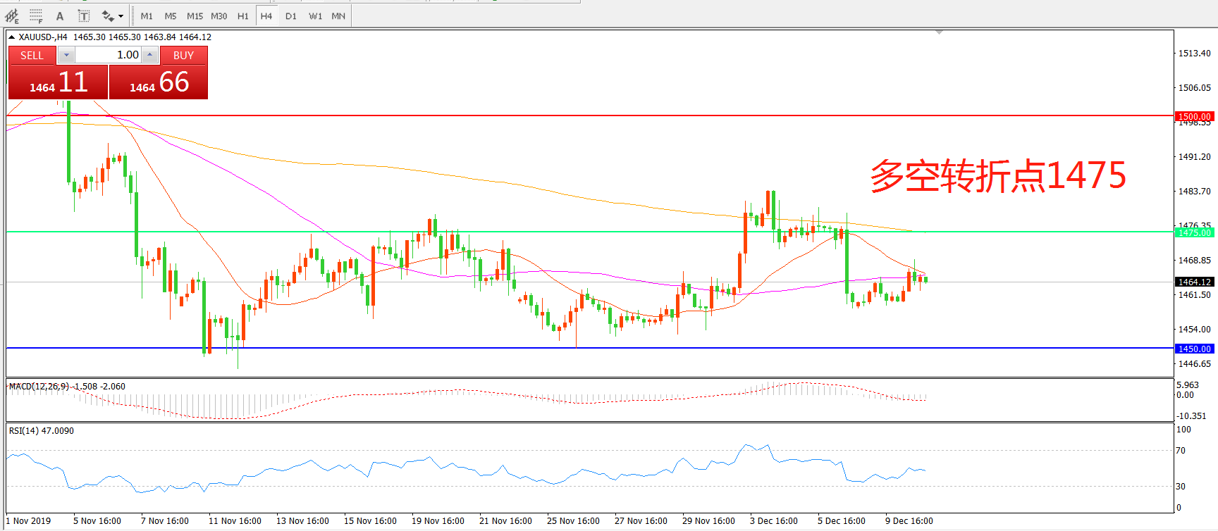 多空转折点:1475.00