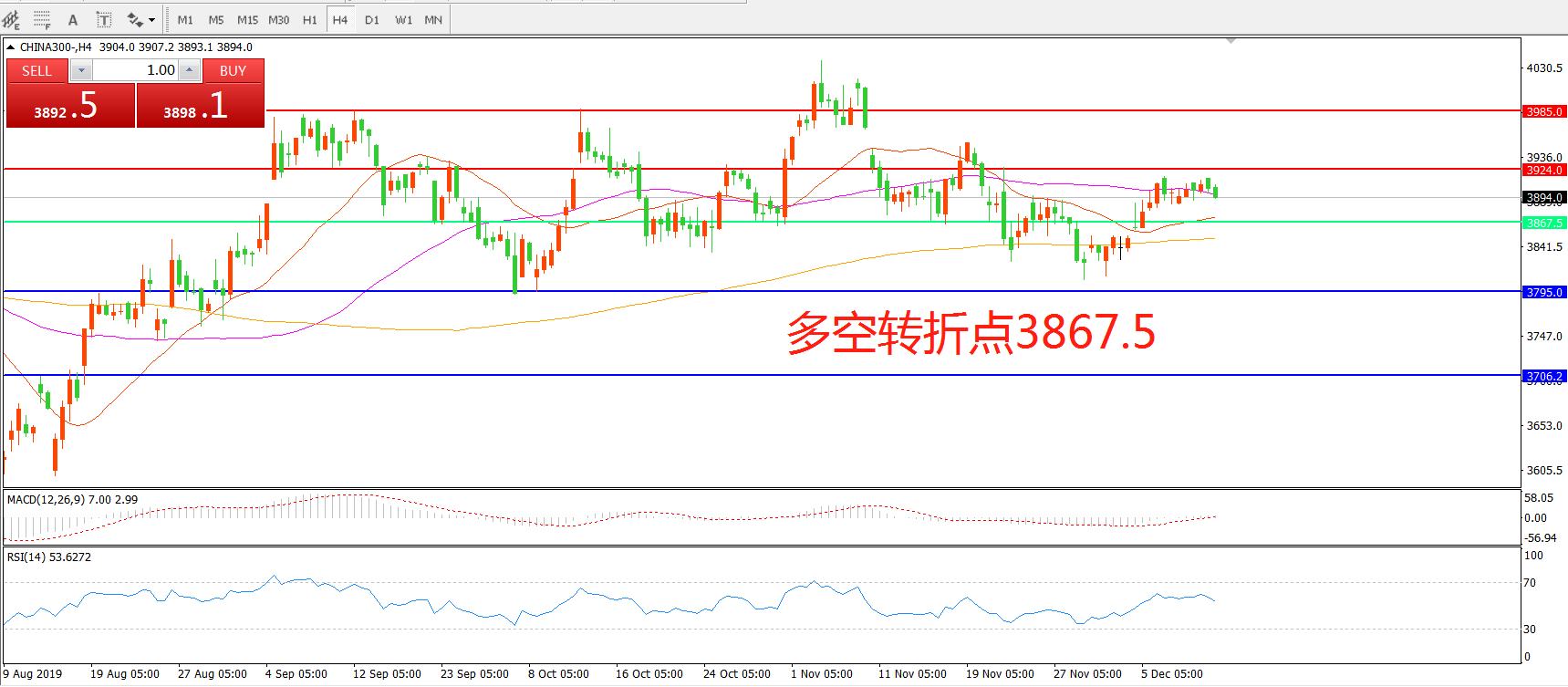 周四(12月13日) 三大股指小幅高开之后,沪指急速走低,尾盘跳水幅度加剧,截止收盘,沪深300小幅收跌,报3892.5点。北上资金继续净买入上千亿元,外资持有A股市值正在逼近中国公募基金的体量。晚间,美国总统特朗普就贸易问题发表了一篇推文,预计将于周四就贸易和12月15日征收新关税的最后期限问题与高级顾问会面。这番言论引爆了市场上的风险情绪,美国股市暴涨刷新历史新高,A股有望跳空高开。
