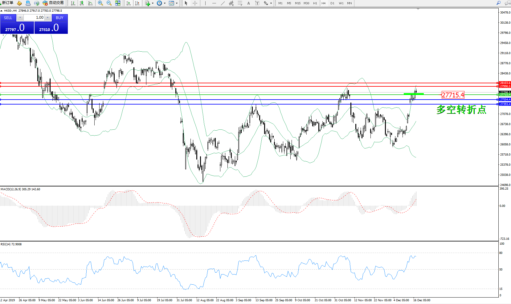 恒指HK50 ——4小时K线图显示: