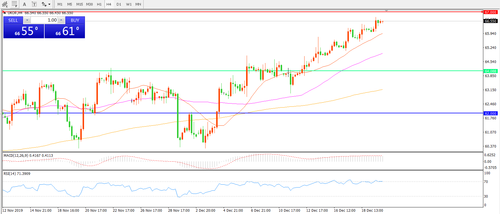 交易策略:在64.00之上看涨,目标67.00 69.50
