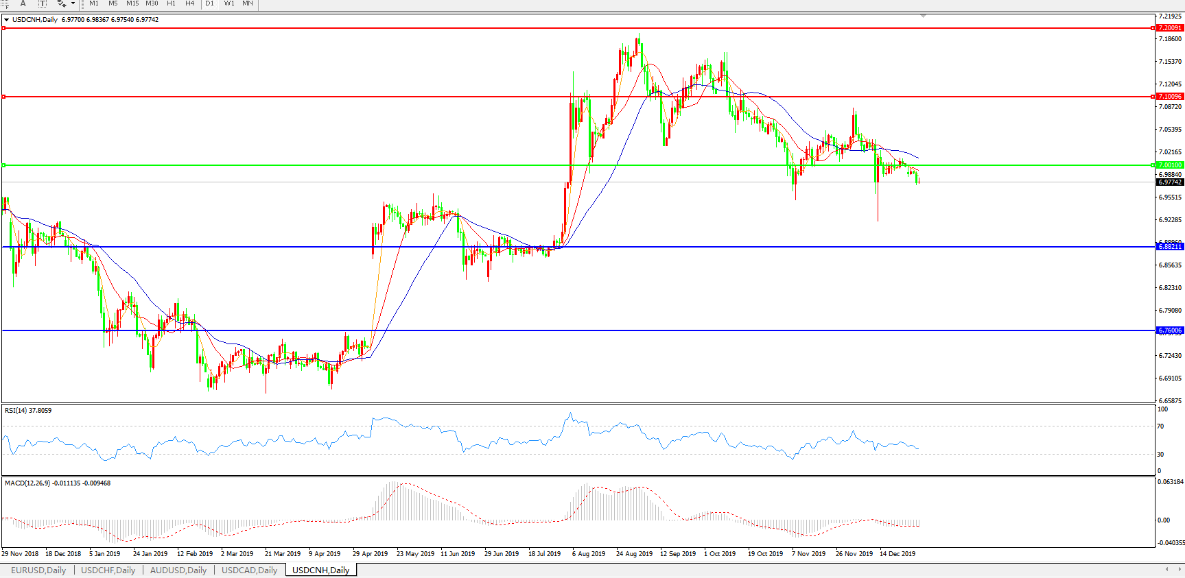 交易策略: 在7.0000之下,看跌,目标价位为6.8820,然后为6.7600。