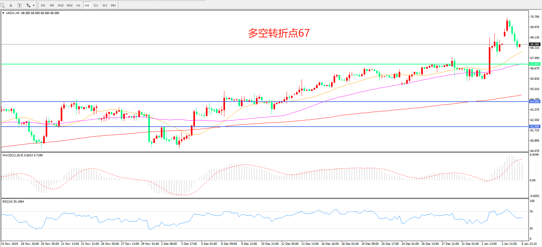 多空转折点:67.00