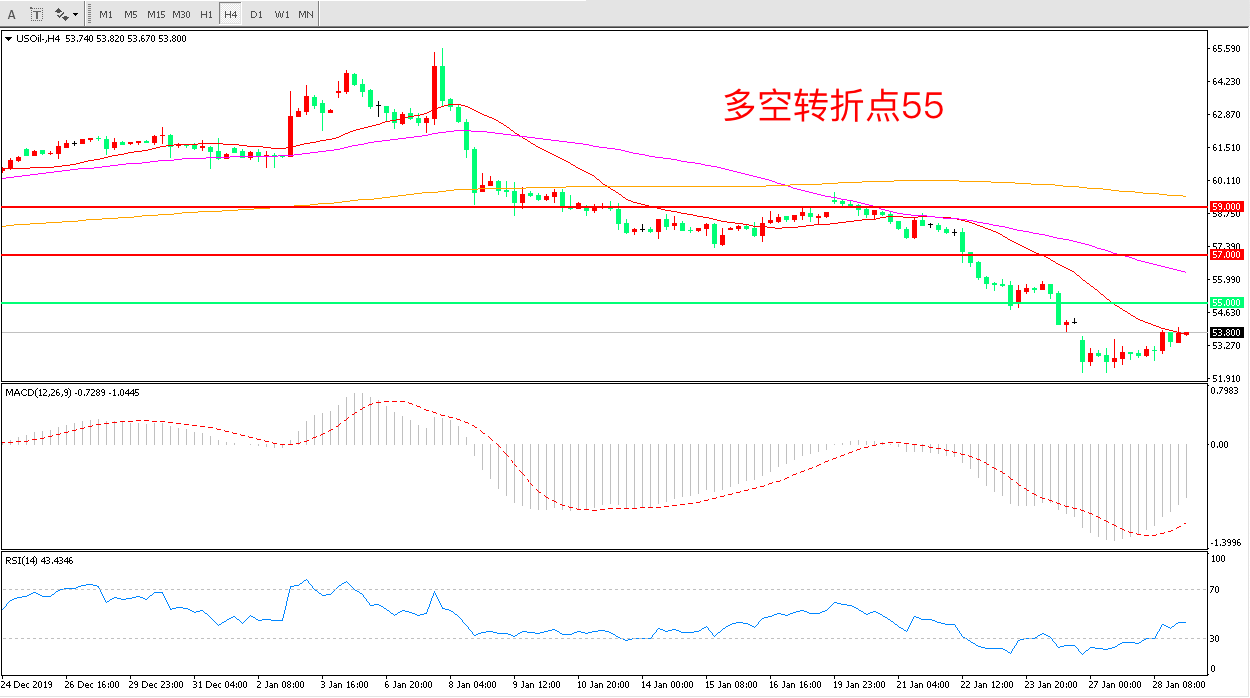 交易策略:在55.00之下看跌,目标52.00         49.50