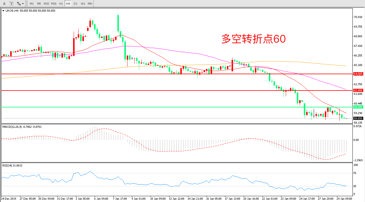 交易策略:在60.00之下看跌,目标57.00 55.00