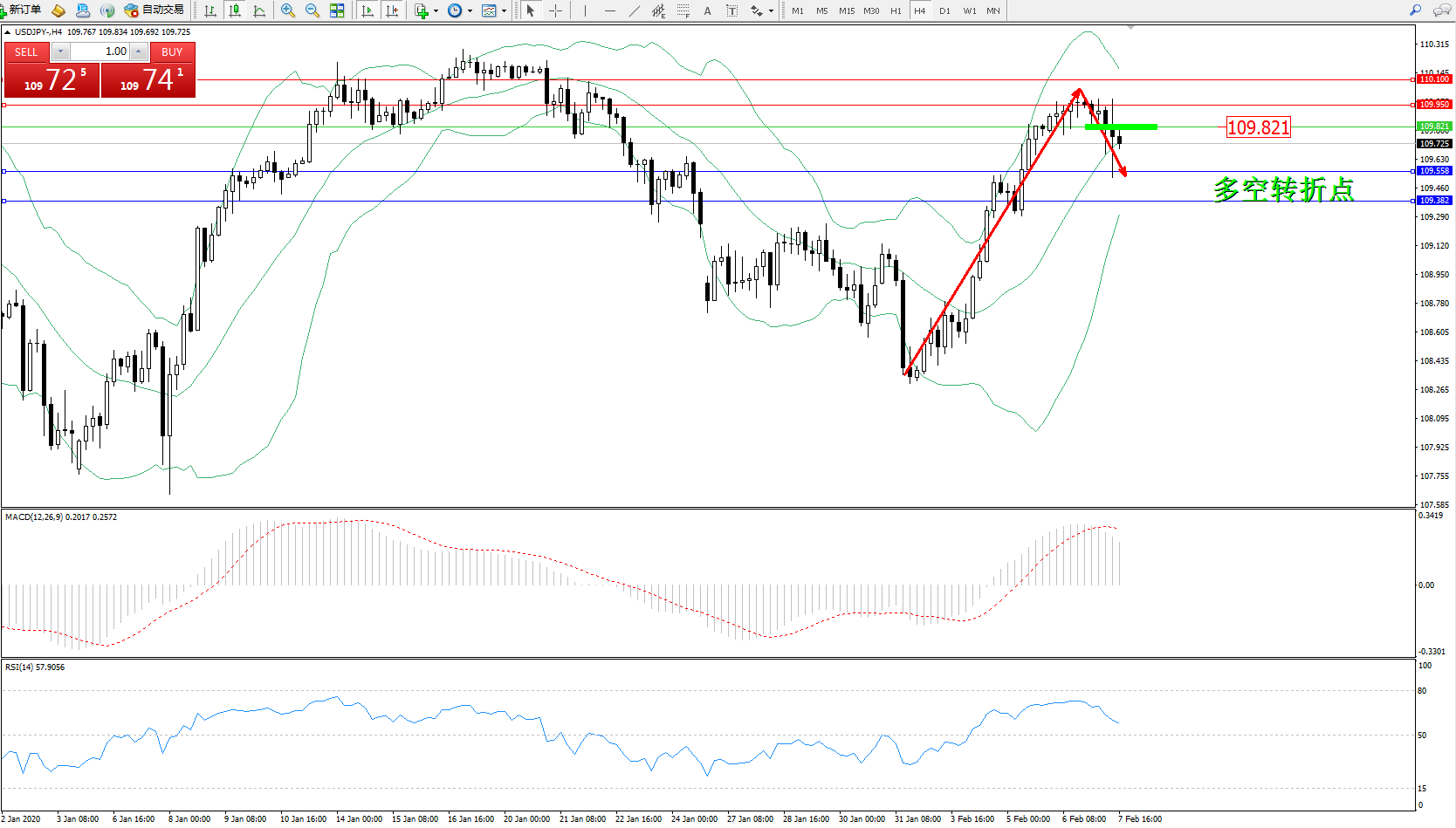 交易策略:109.821下方看跌,目标109.558、109.382
