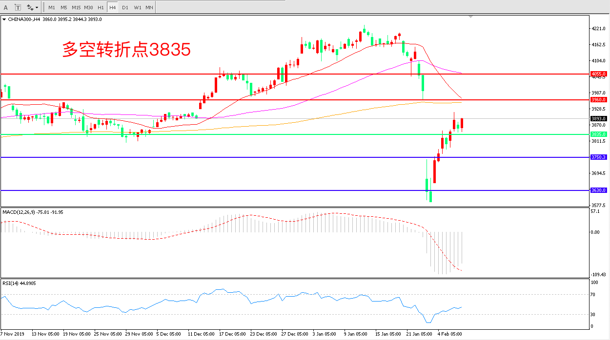 沪深300  CHINA 300   4小时图