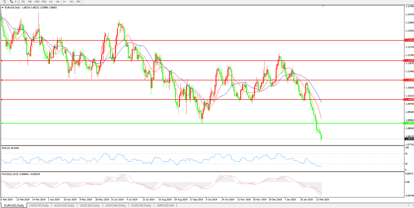 支撑位:1.0800、1.0500