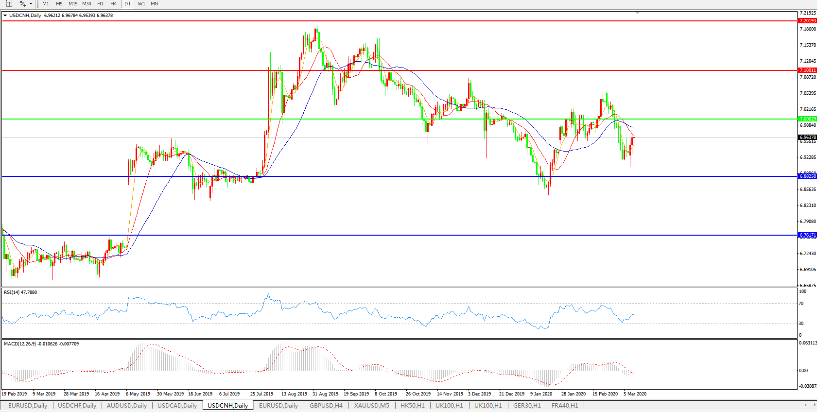 美元兑人民币USDCNH 日线图: