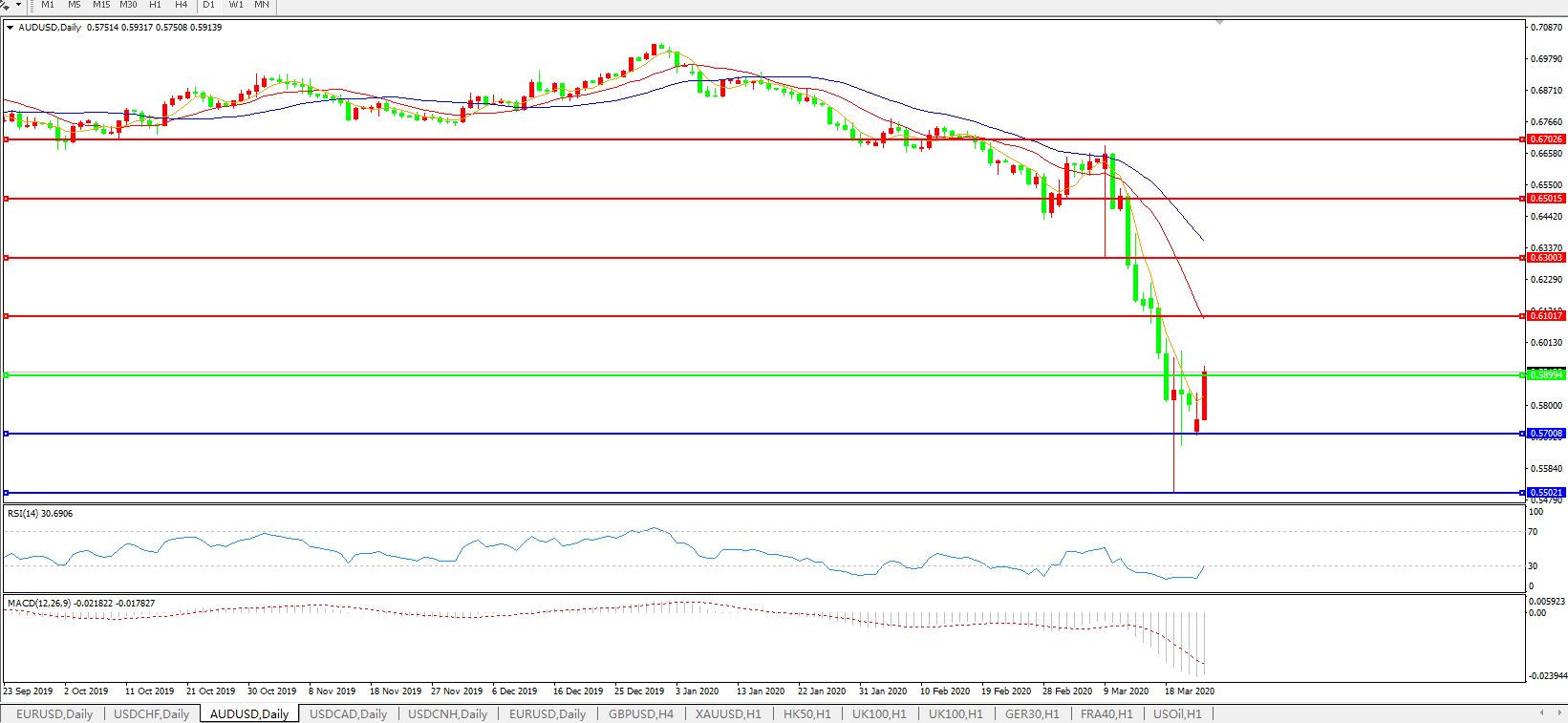 澳元兑美元AUDUSD 日线图: