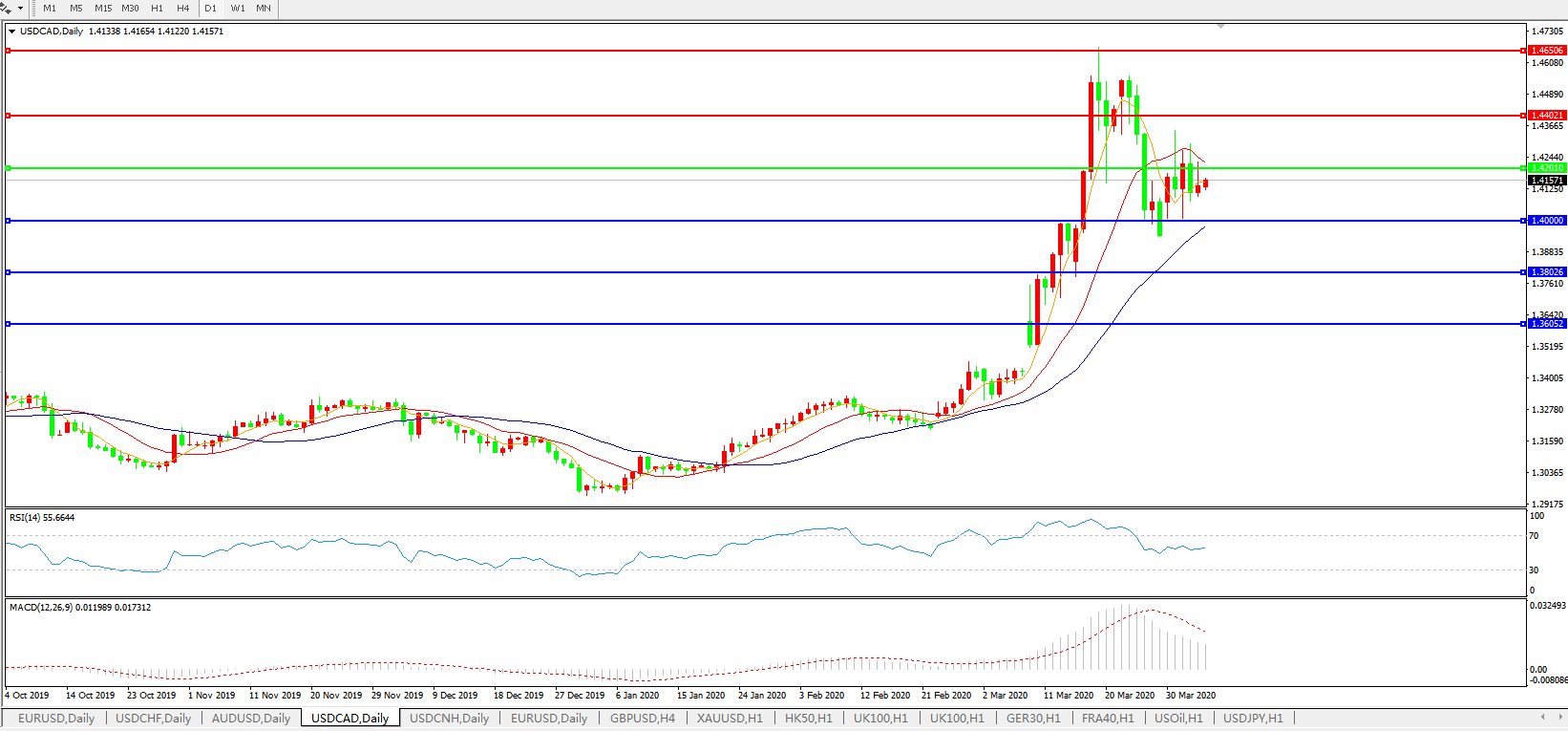 美元兑加元USDCAD    日线图: