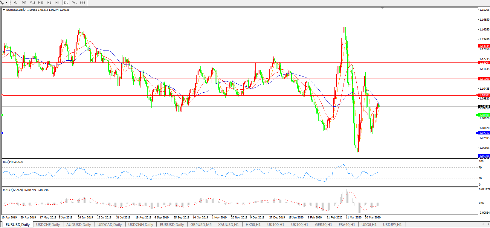 欧元兑美元EURUSD   日线图: