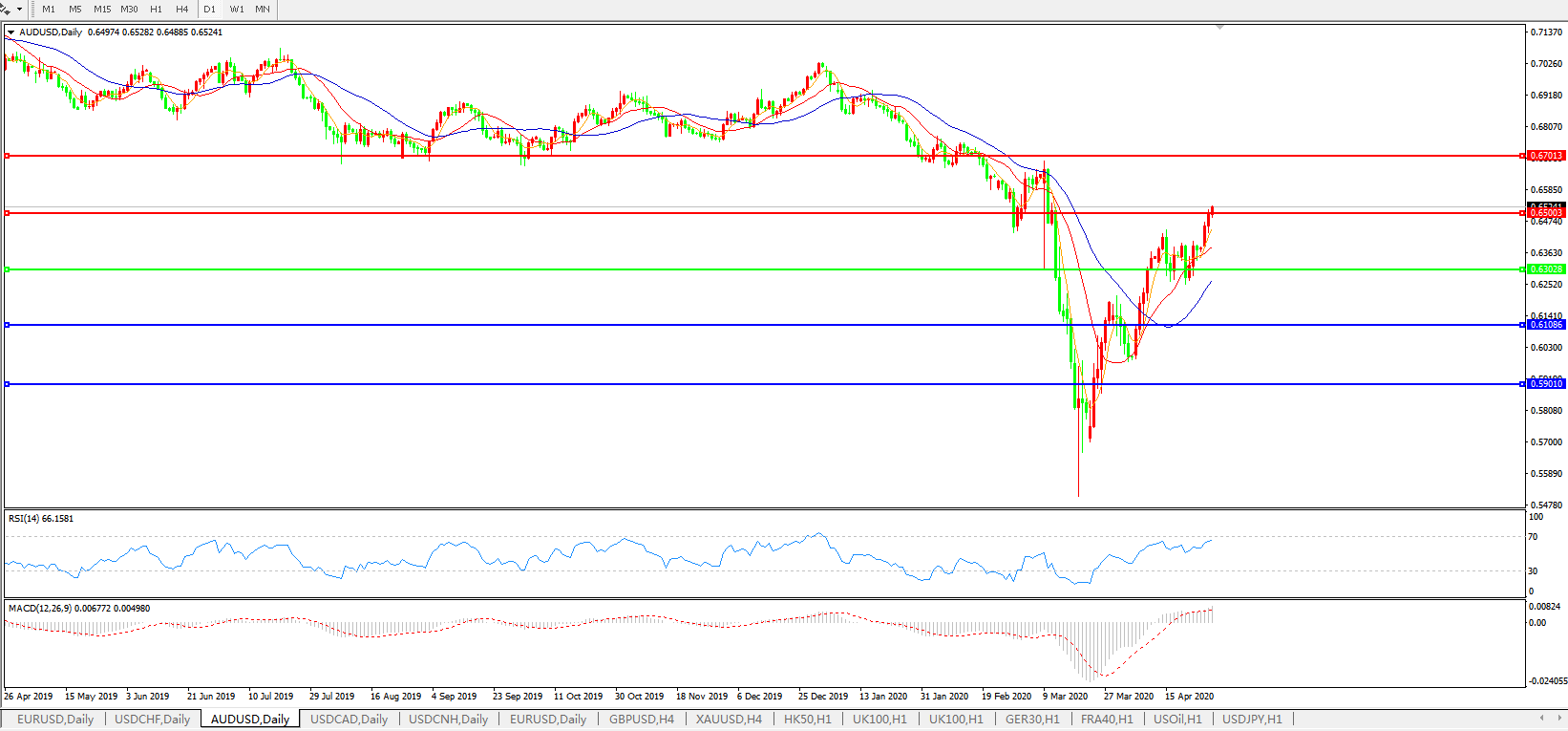 澳元兑美元AUDUSD    日线图: