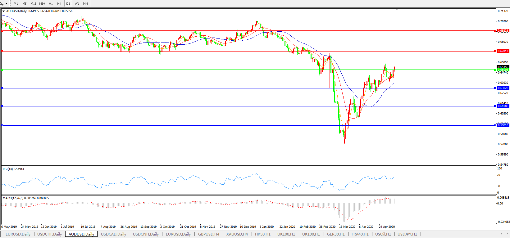 澳元兑美元AUDUSD 日线图: