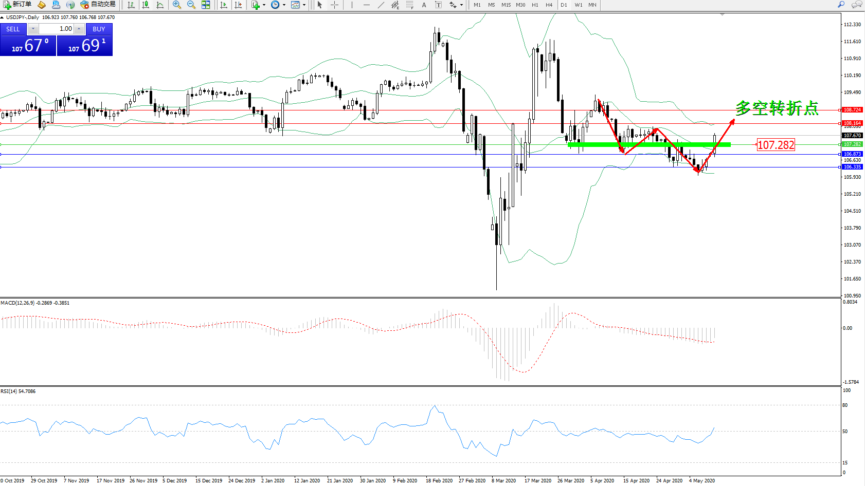 美元兑日元大涨0.7%至107.4,创一周半新高,周末以来,全球风险偏好情绪在欧美隔国解除封锁进程进一步加深前景之下进一步回暖,令避险日元首当其冲受打压。同时,市场之前对全球贸易风险重萌的担忧也同样已经消退;此外,日本央行表示,因通缩风险,日本央行应采取大胆的措施,仍有更多财政和货币政策空间。此外,日本立法收紧外国投资限制,涉及过半数上市公司。日本经济再生大臣西村康稔称,日本政府将考虑对疫情不严重的34个县中的部分地区提前解除紧急状态。