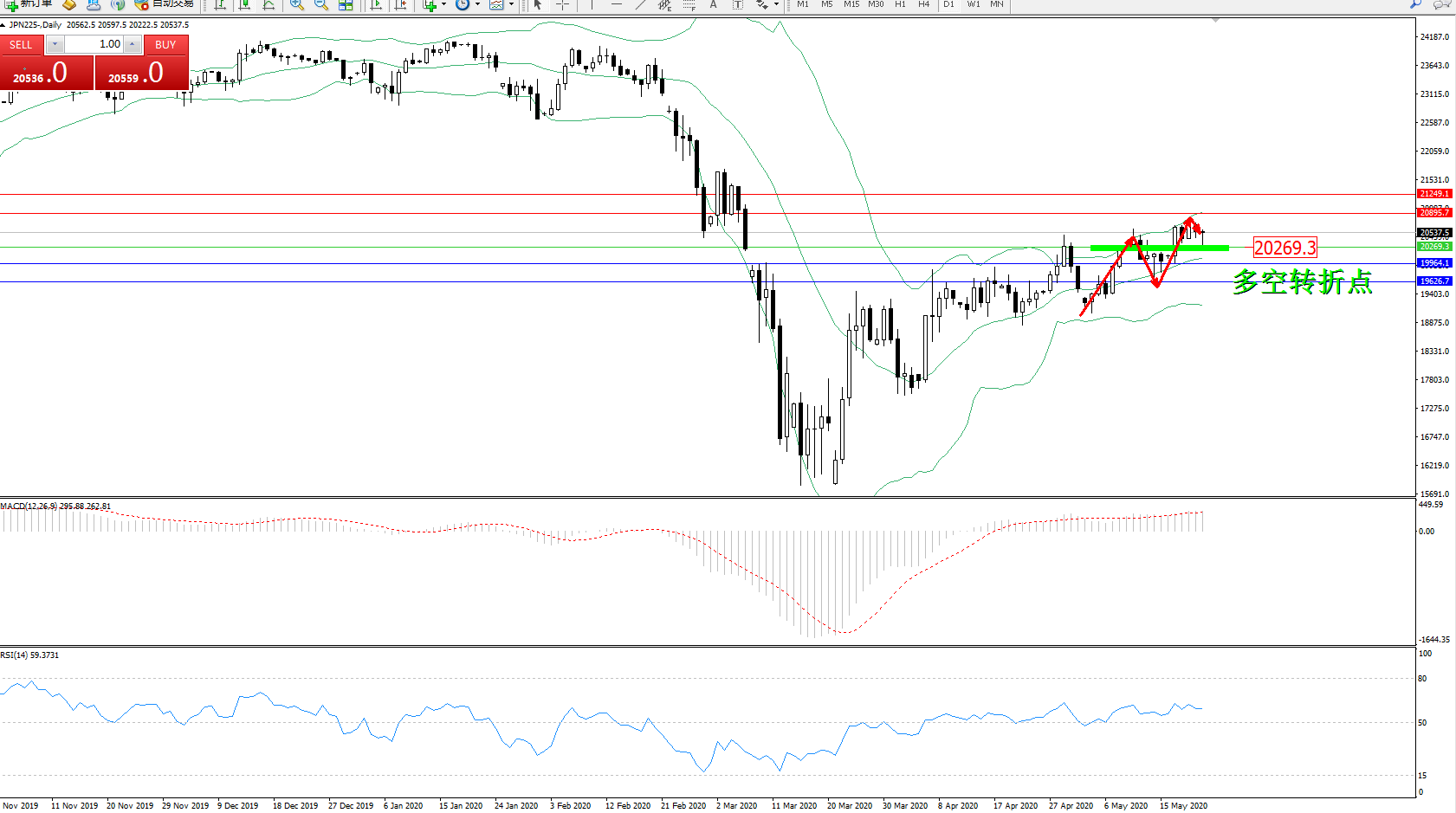 日经指数JPN225——日K线图显示: