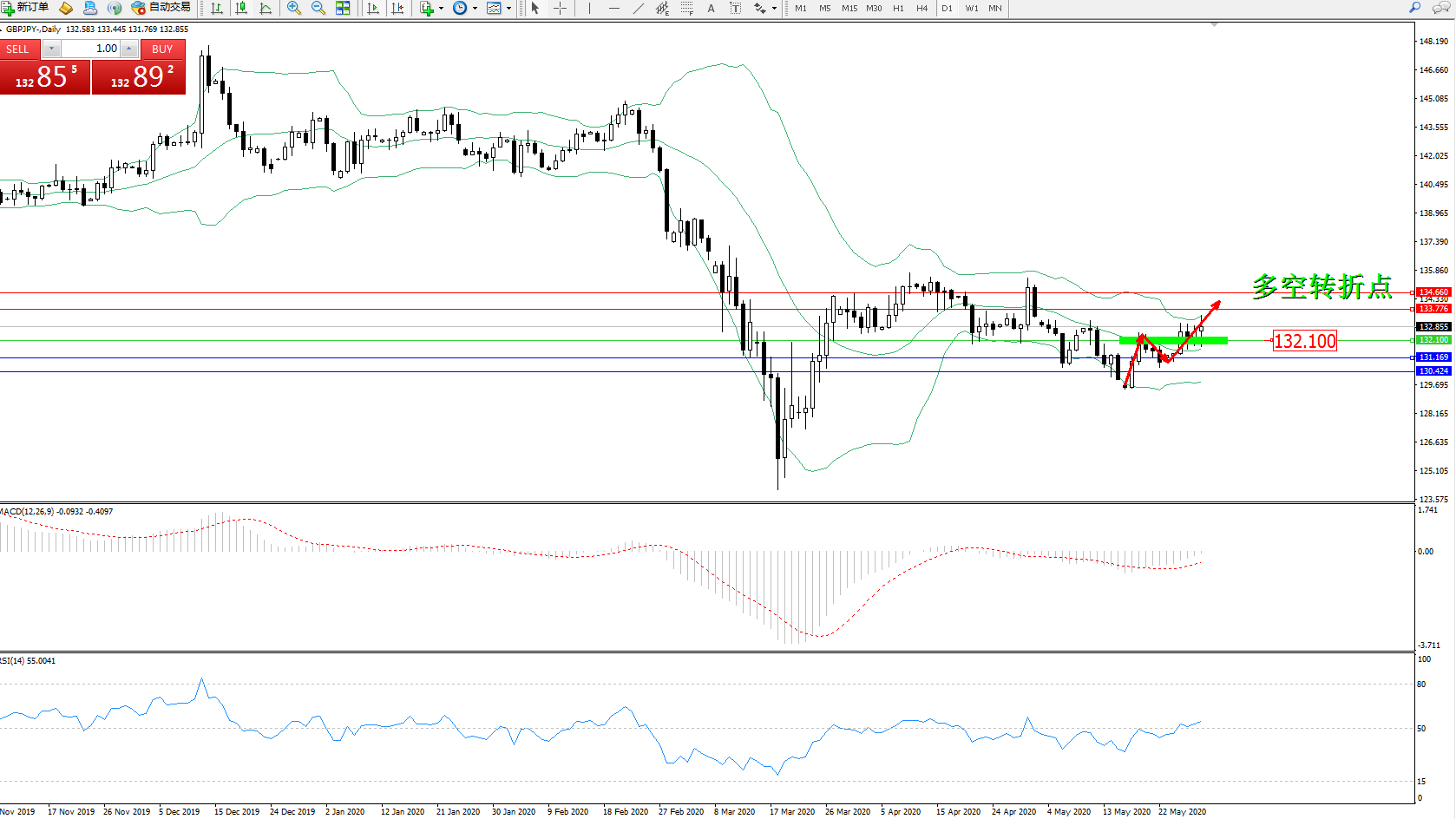 多空转折点:132.100