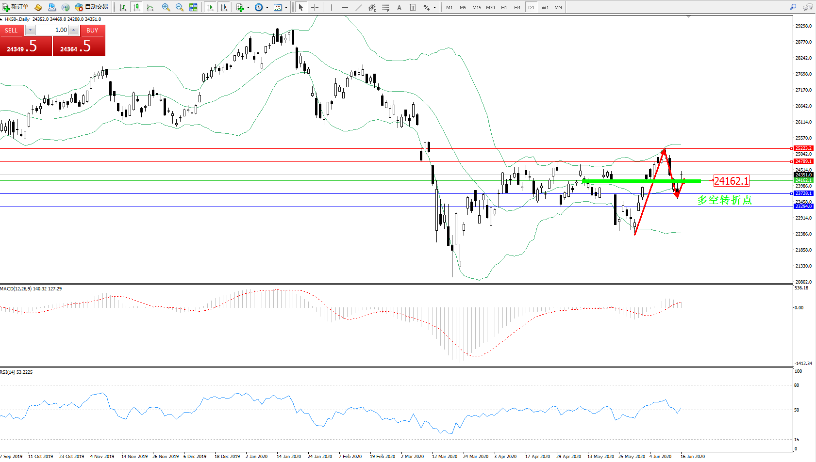 恒指HK50 ——日K线图显示: