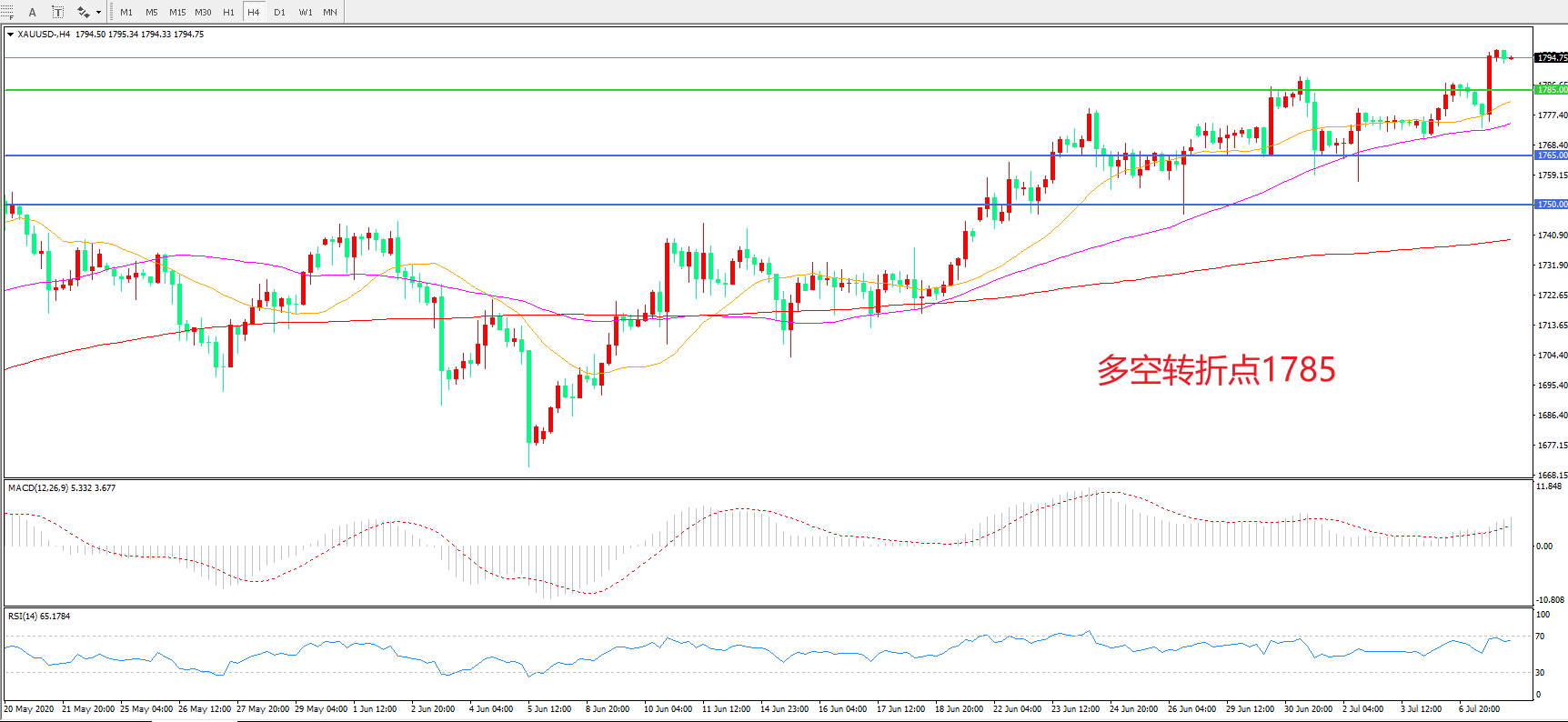 多空转折点:1785.00