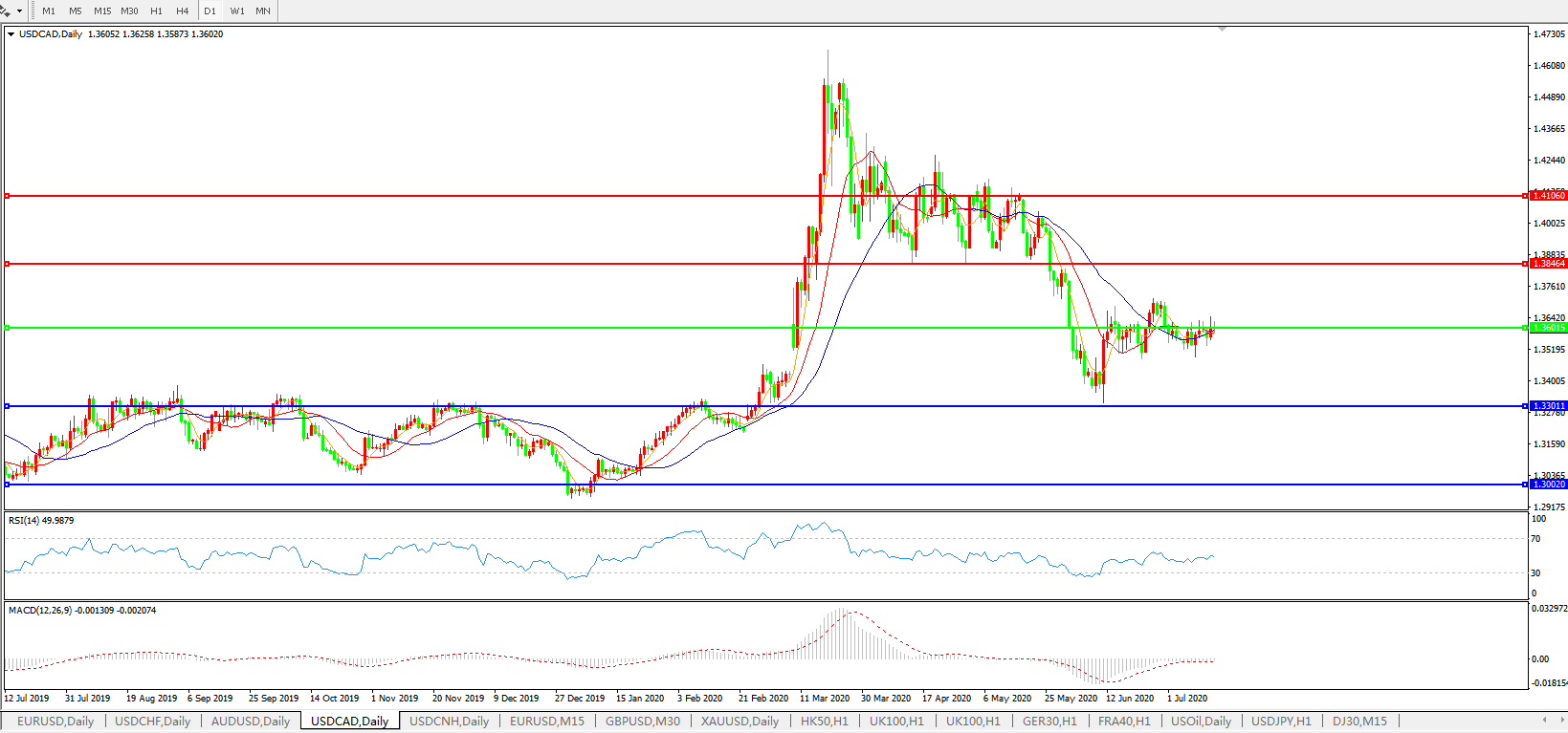美元兑加元USDCAD 日线图: