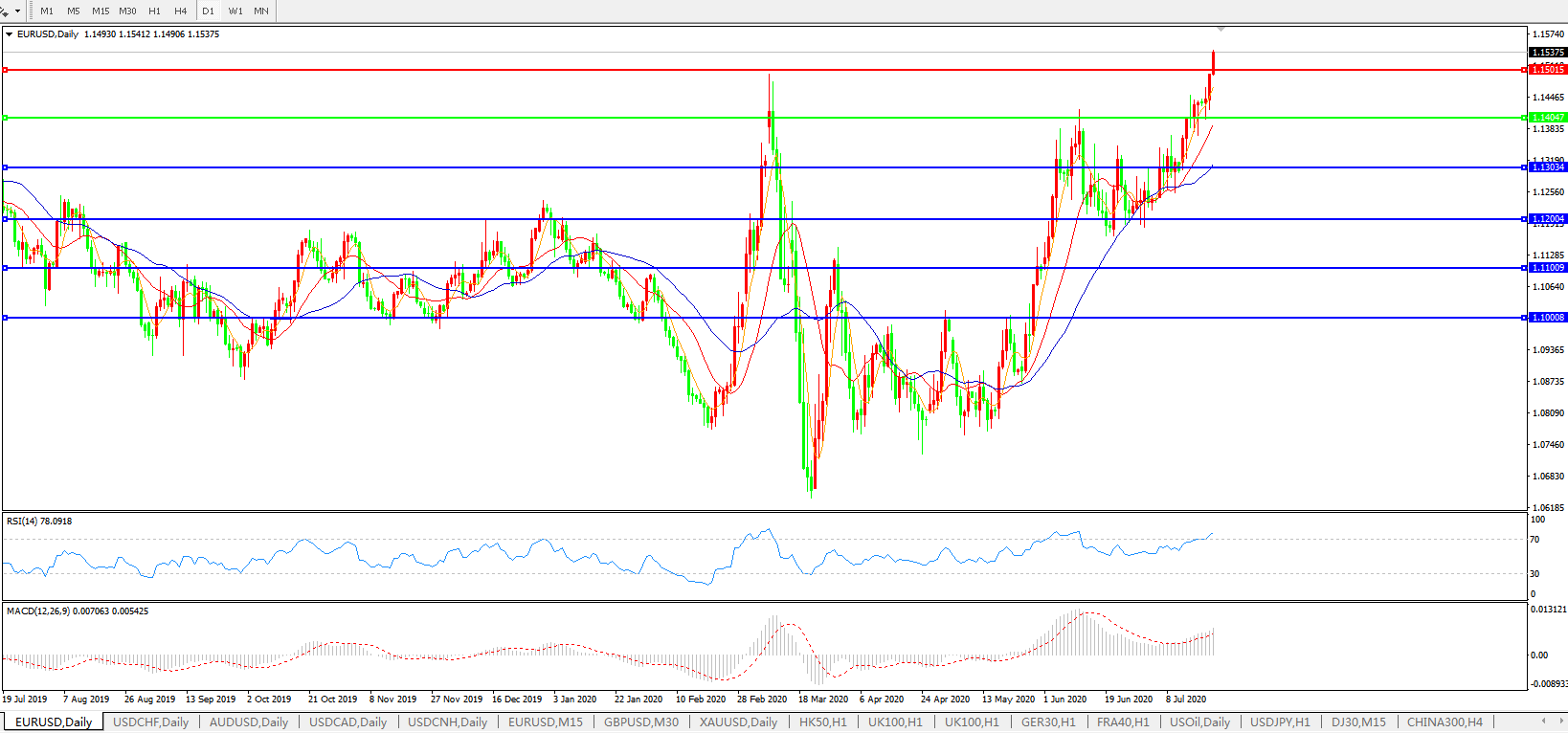 交易策略:1.1400上方看涨,目标1.1500、1.1600