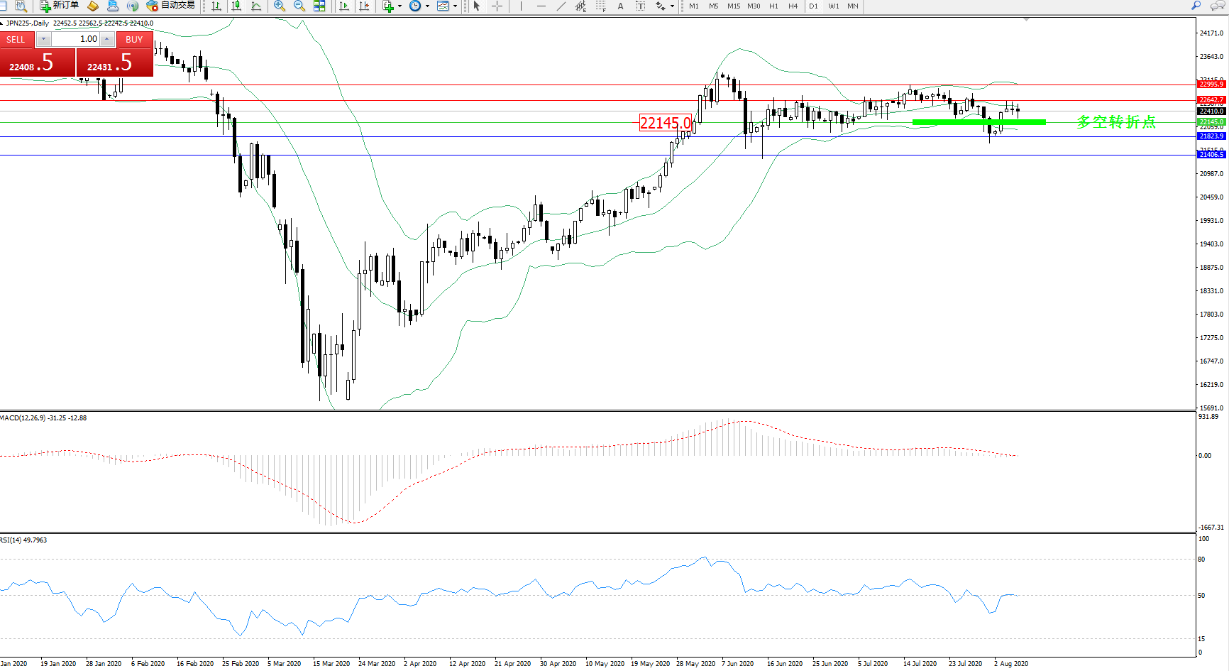 日经指数JPN225——日K线图显示: