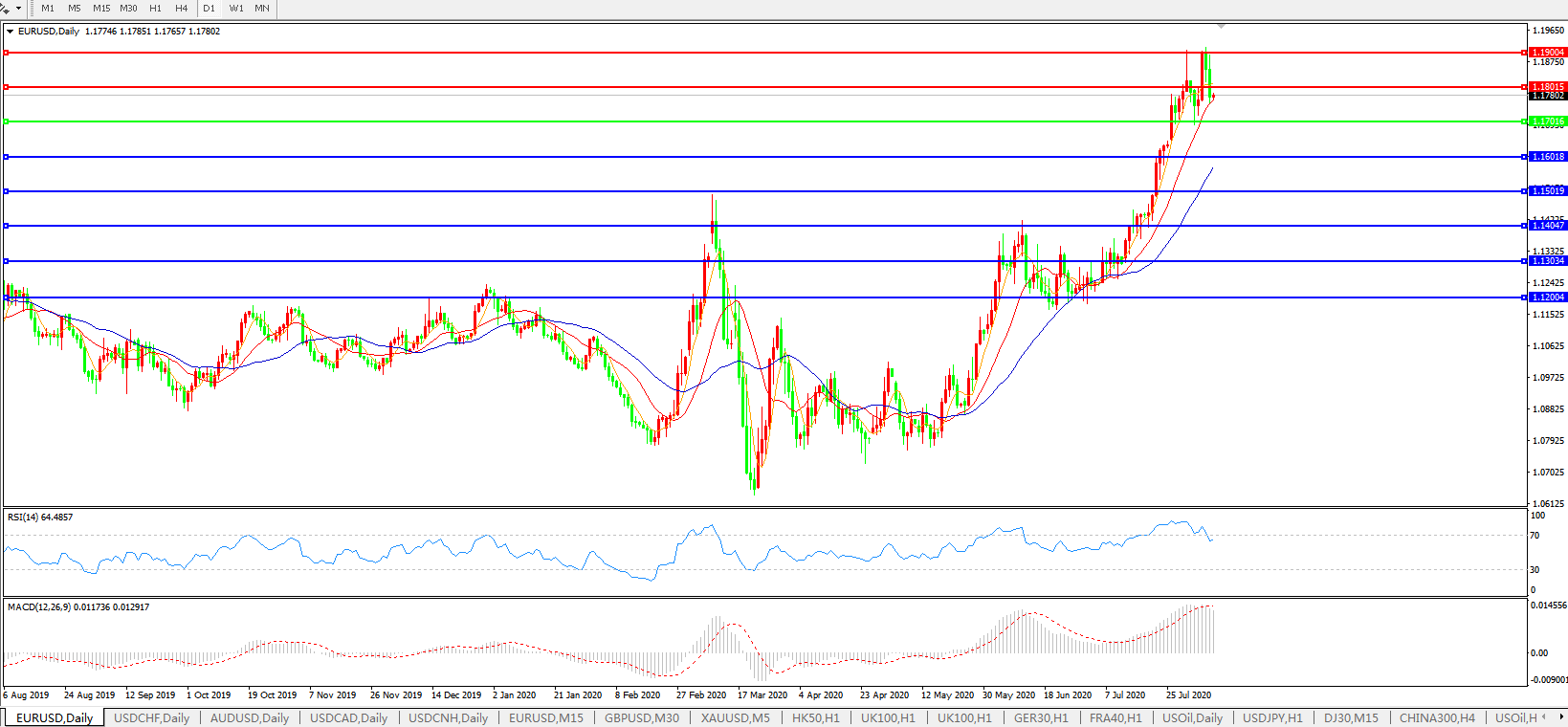 备选策略:1.1700下方看跌,目标1.1600、1.1500