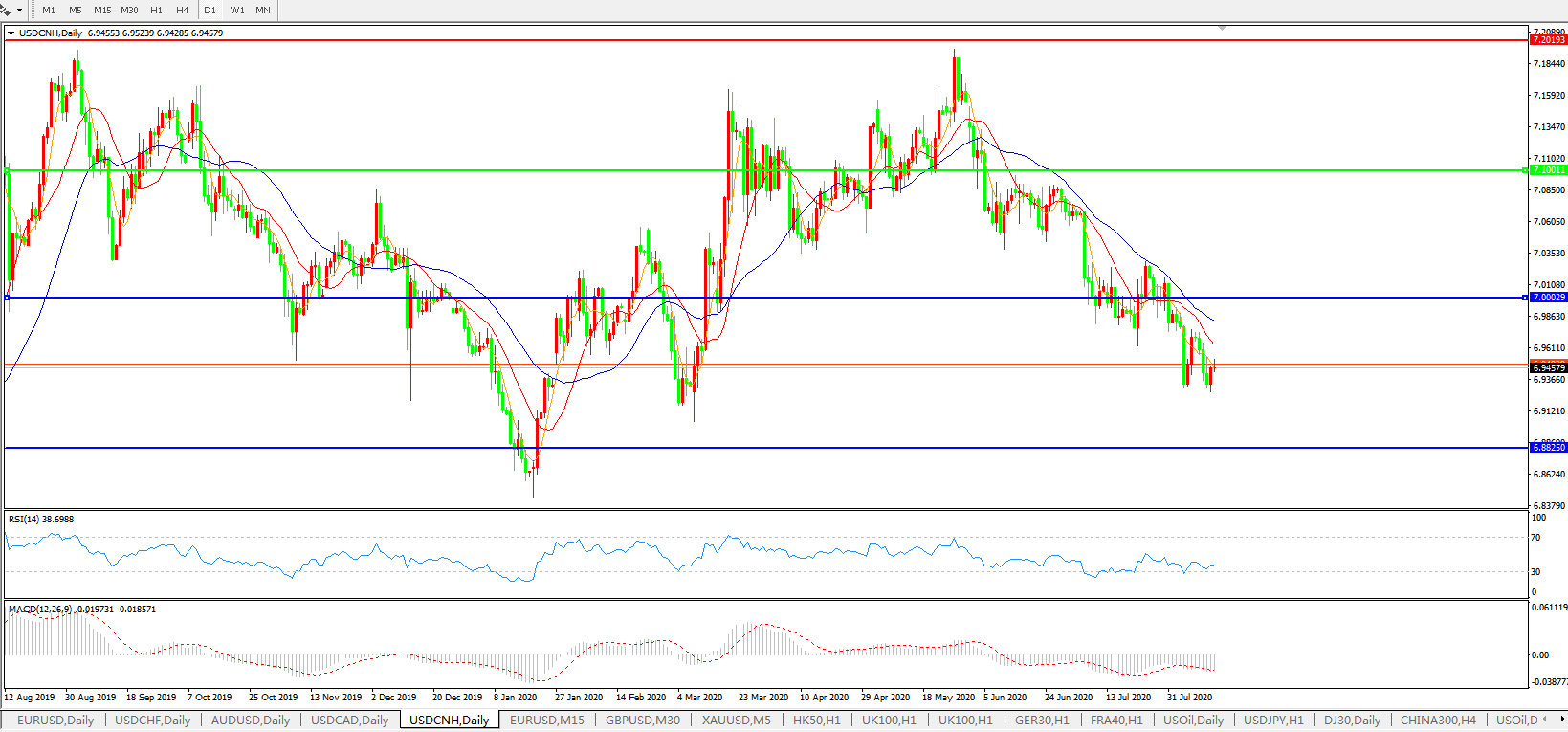美元兑人民币USDCNH    日线图: