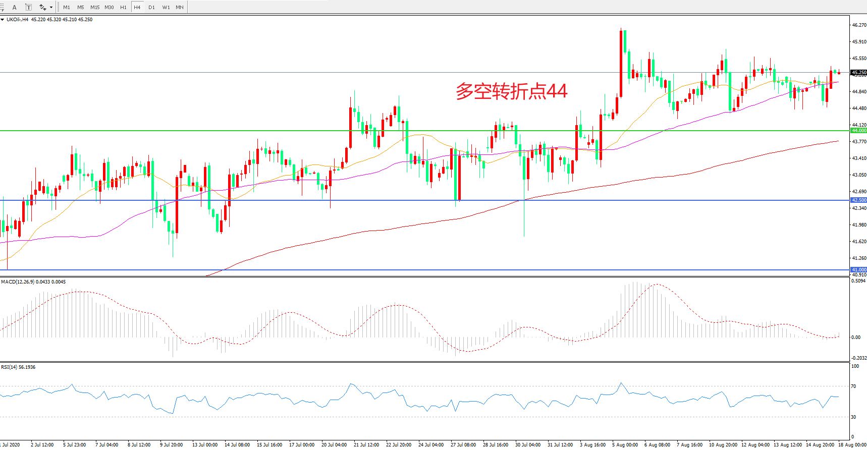 交易策略: 在44.00之上看涨,目标46.50 49.00