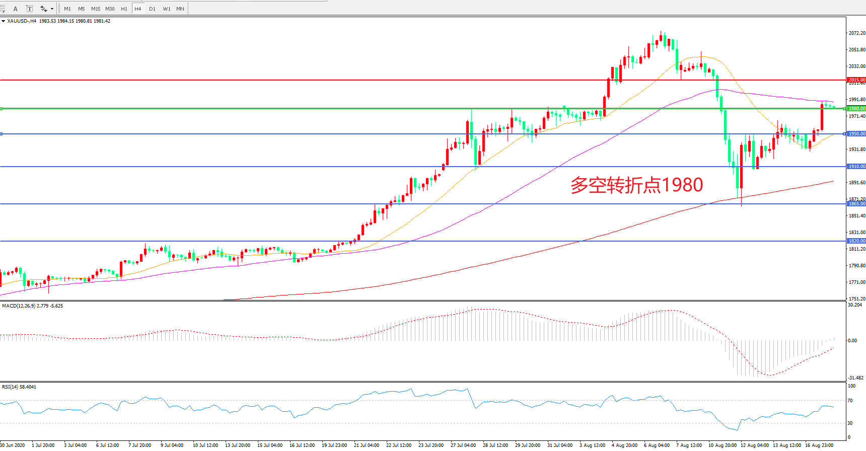 备选策略: 在1950.00之下看跌,目标1910.00 1865.00