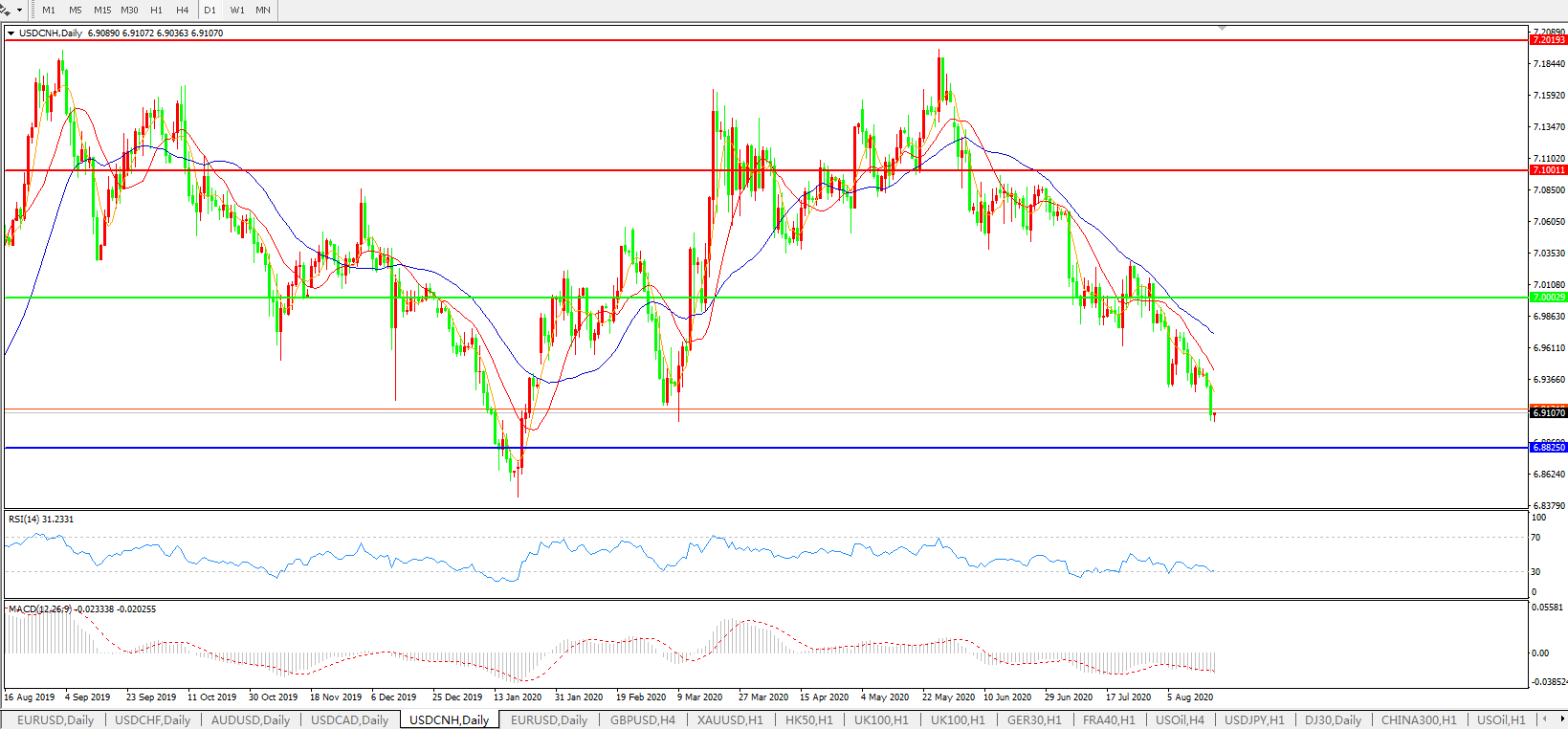 美元兑人民币USDCNH    日线图: