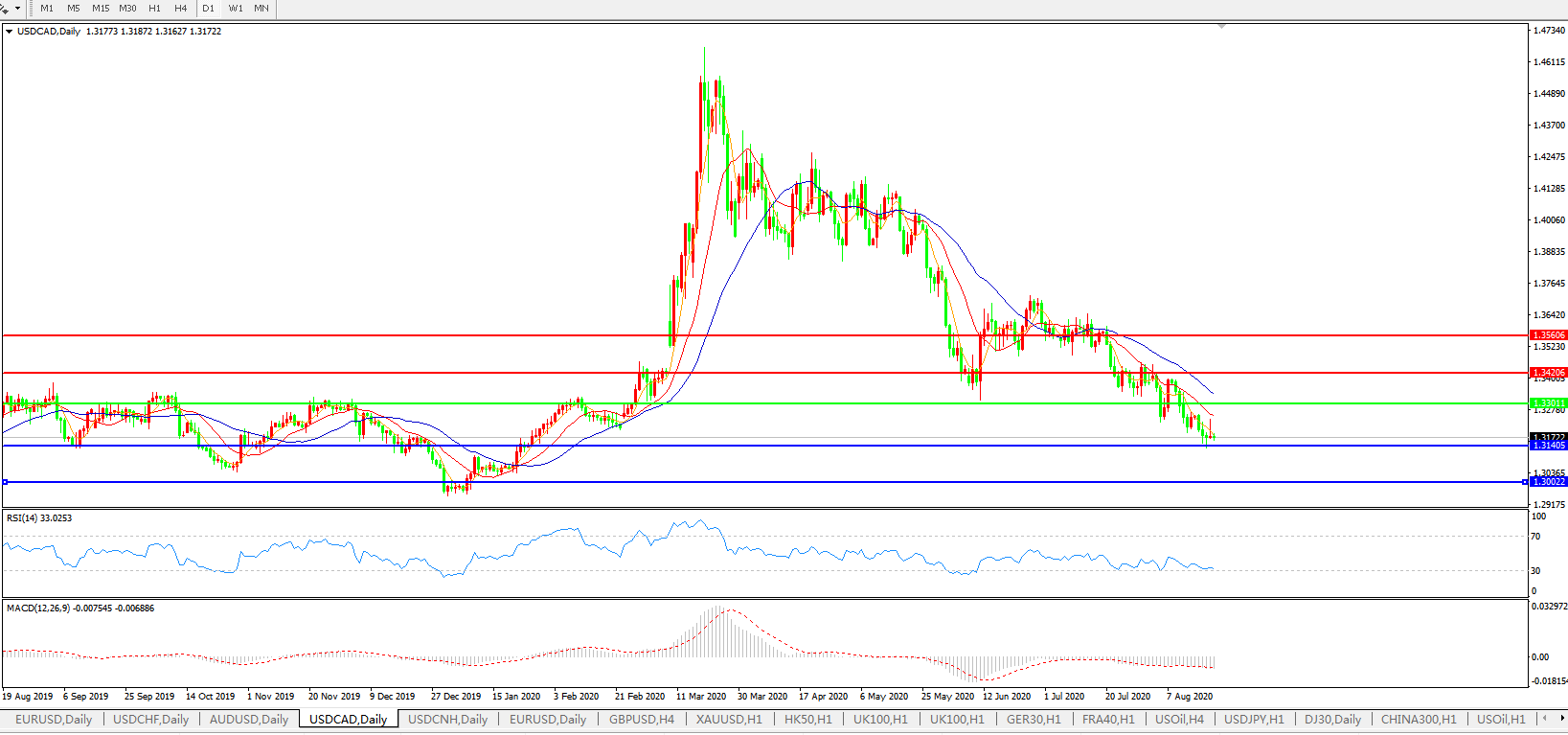 美元兑加元USDCAD 日线图: